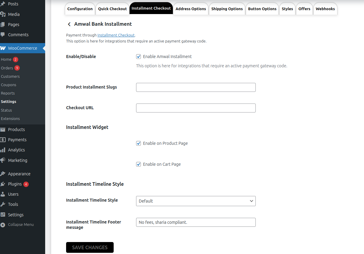 Note : If the user clicked on the installments option tab then he will be redirected to the link you pasted in "Checkout URL" field. Note : By default it should looks like this ( https://your-website-url/checkout )