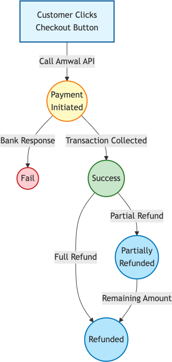 | Partially refunded | partially refunded | Part of transaction amount returned to customer |