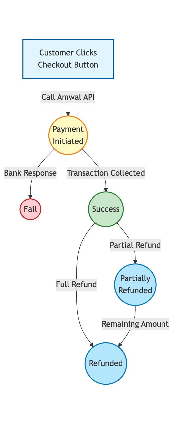 Partially refunded | partially refunded | Part of the transaction amount has been returned to the customer, possibly due to a partial return. |